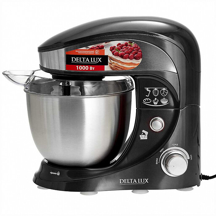 Миксер планетарный DELTA LUX DL-5070Р черный: 1000 Вт,чаша из нерж.стали-4л
