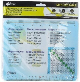 Коврик для мыши RITMIX MPD-020 Table, шпаргалка по математике, ПВХ/полипропилен, клейкая основа информация: