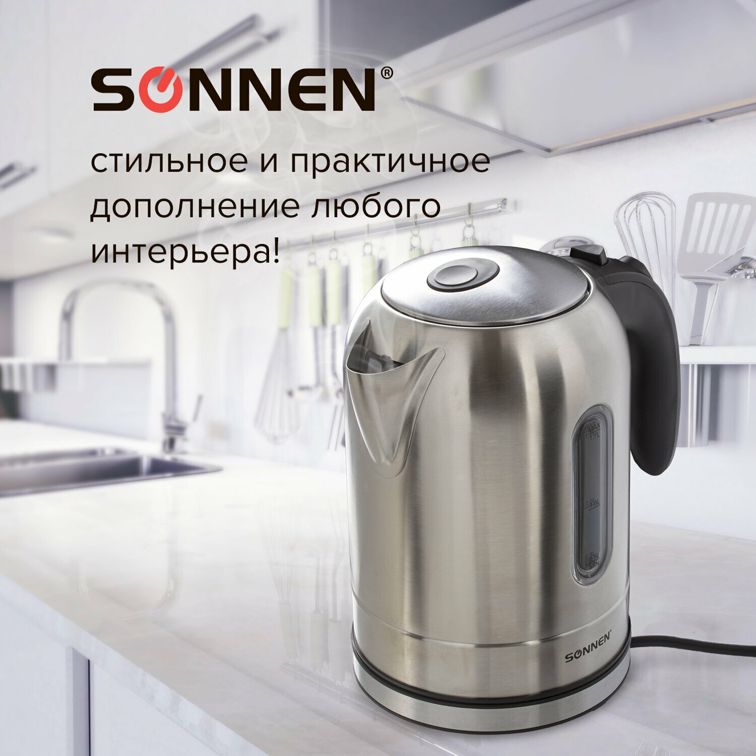 Чайник SONNEN KT-1755 1 7 л 2200 Вт закрытый нагревательный элемент нержавеющая сталь, 1 шт