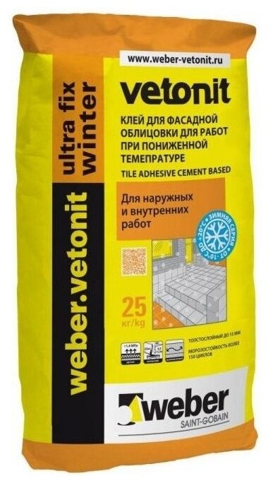 Вебер.ветонит Ультра Фикс клей для камня, керамогранита и мозаики (25кг) зимний / WEBER.VETONIT Ultra Fix Winter лей для фасадной облицовки камня и ке