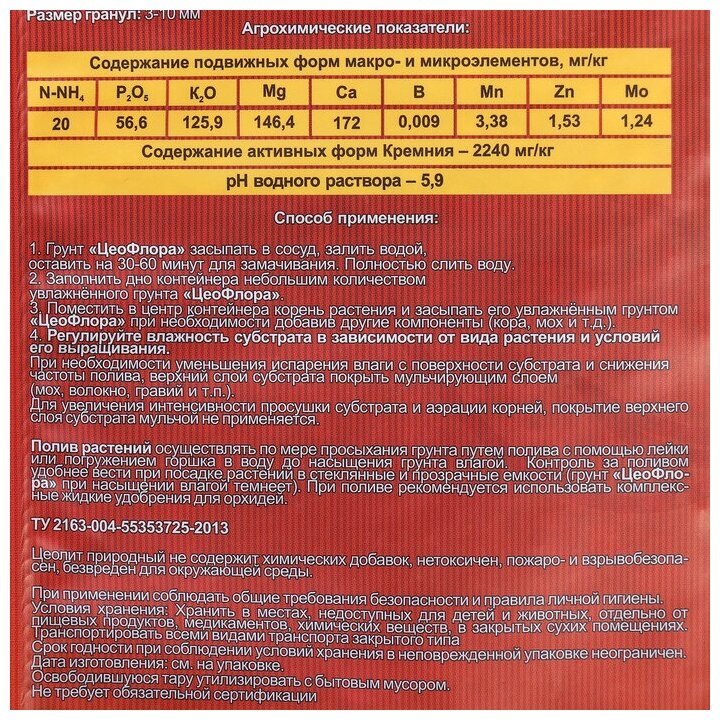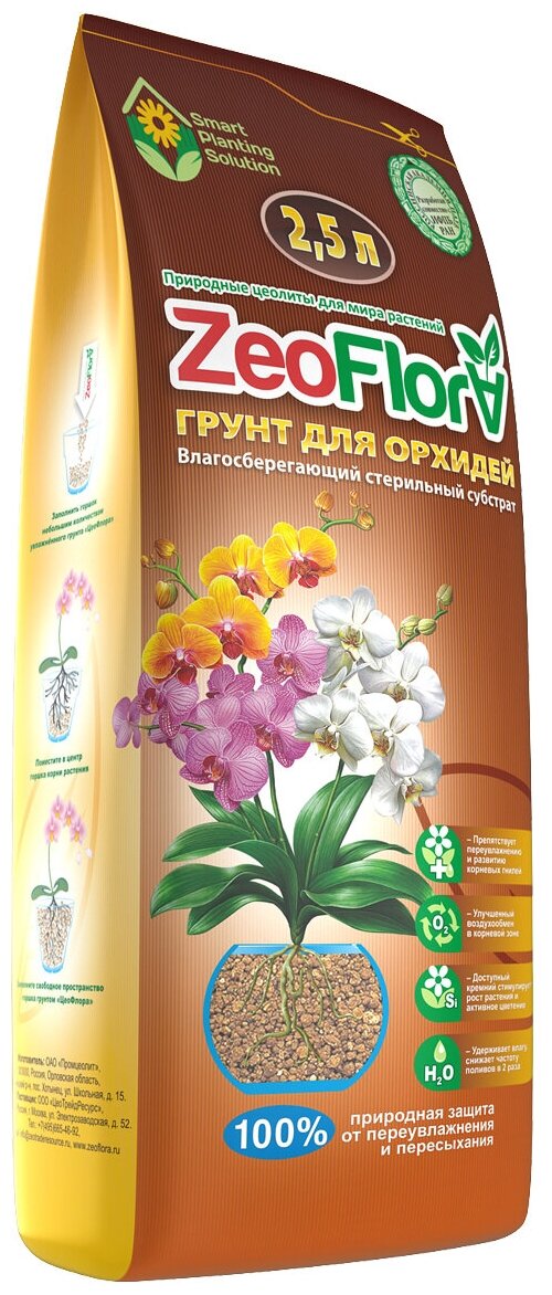 Грунт для орхидей Цео Флора (ZeoFlora) влагосберегающий 2,5 л информация: