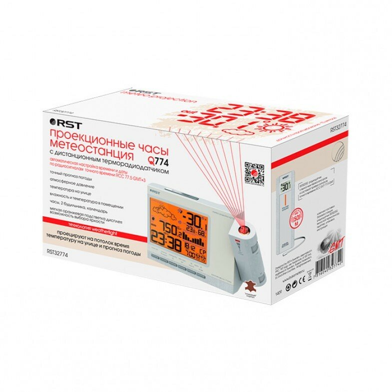 Цифровая домашняя метеостанция с беспроводным выносным датчиком, часы проекционные RST 32774