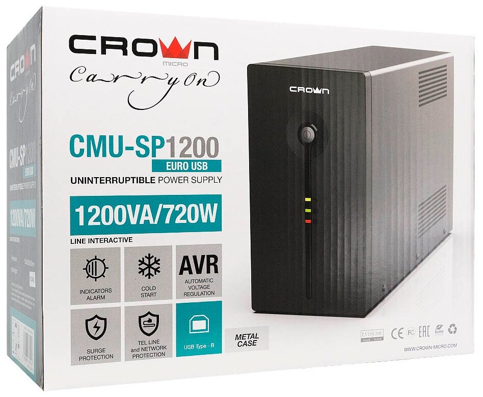 ИБП Crown Line Interactive CMU-SP1200EURO USB, 1200VA\720W информация: