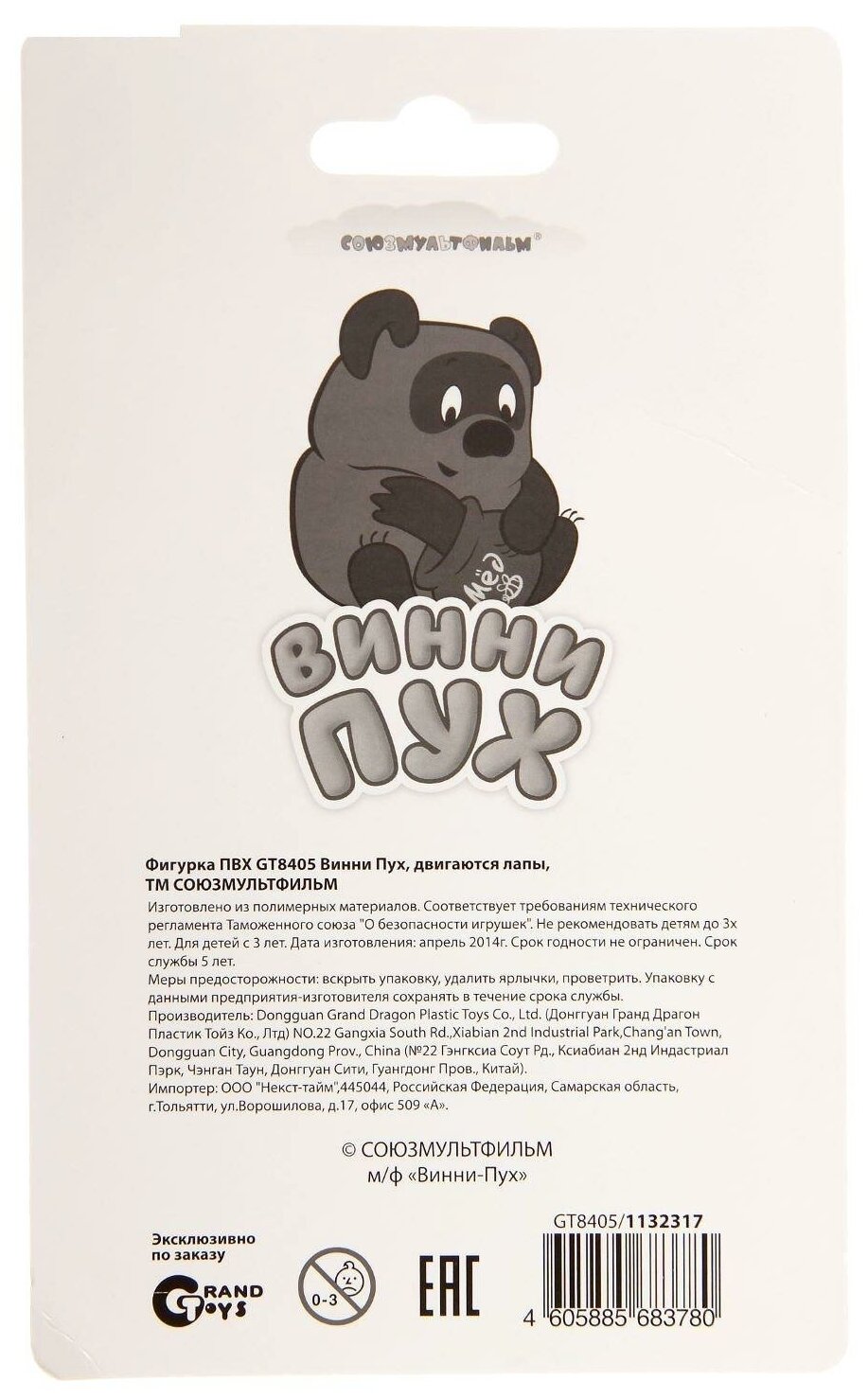 Фигурка Винни Пух, двигаются лапы, в блистере 11*15см, союзмультфильм, ПВХ, GT8405 информация: