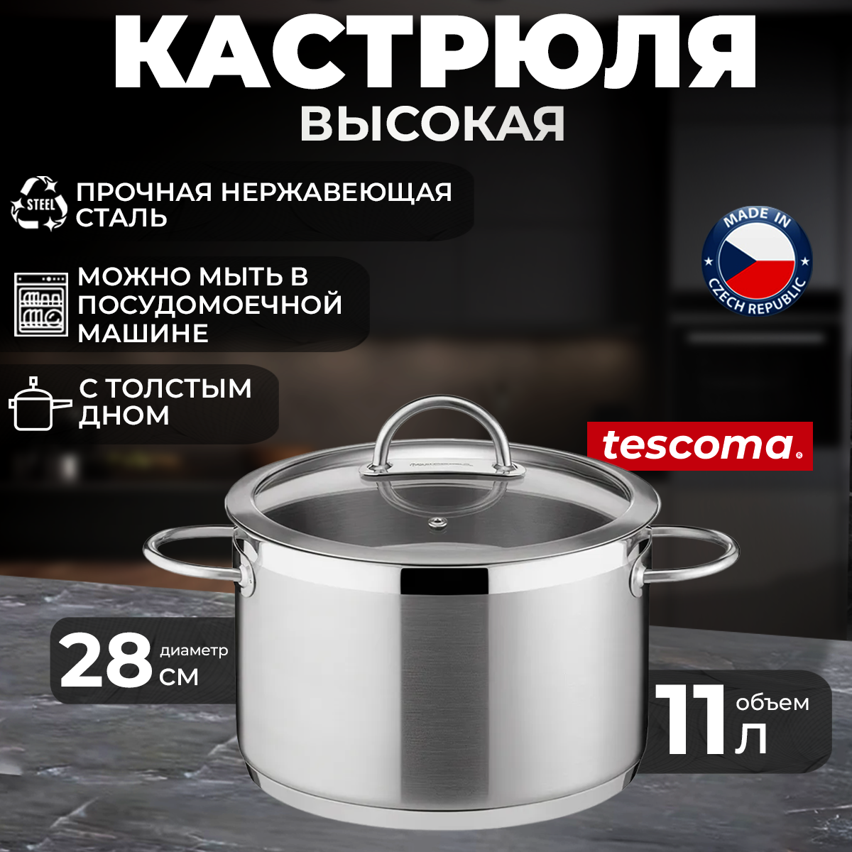 Кастрюля Tescoma Vision, 11 л, диаметр 28 см информация: