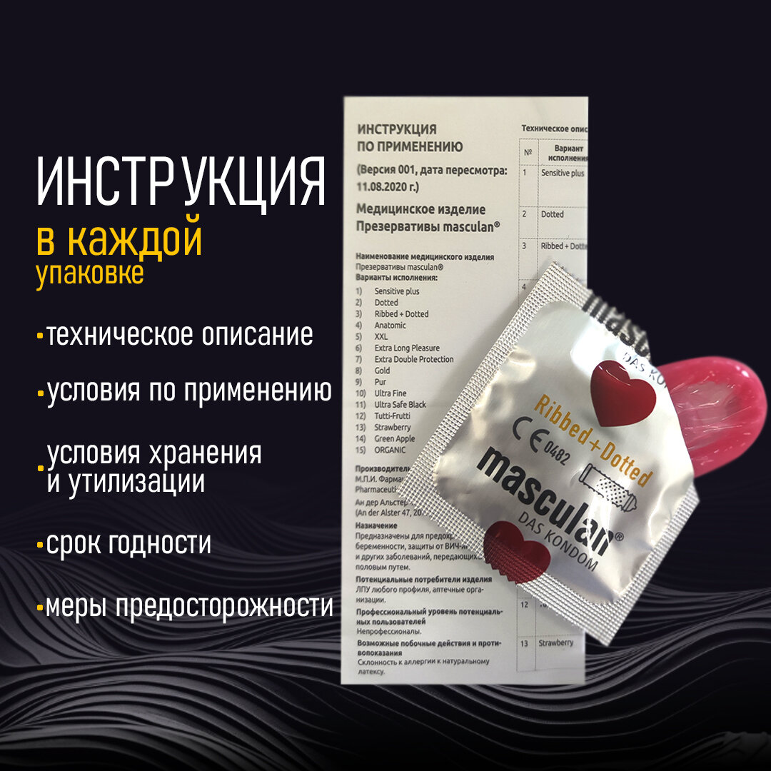 Презервативы Masculan Ribbed+Dotted №10, 2 упаковки (20 презервативов, с колечками и пупырышками) информация: