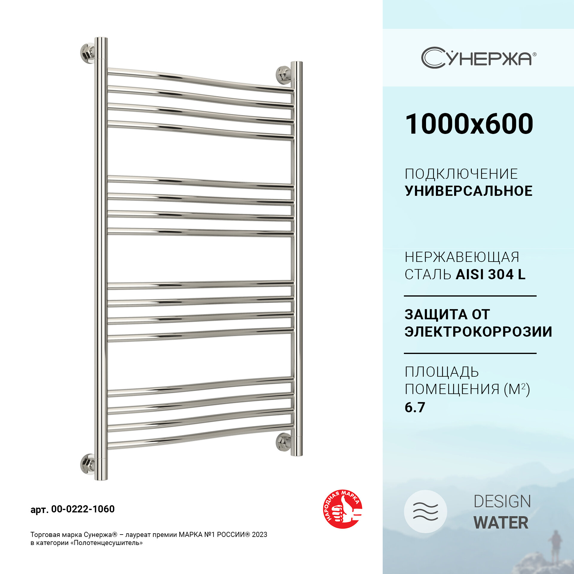 Водяной полотенцесушитель Сунержа Флюид+ 1000x600 без покрытия информация: