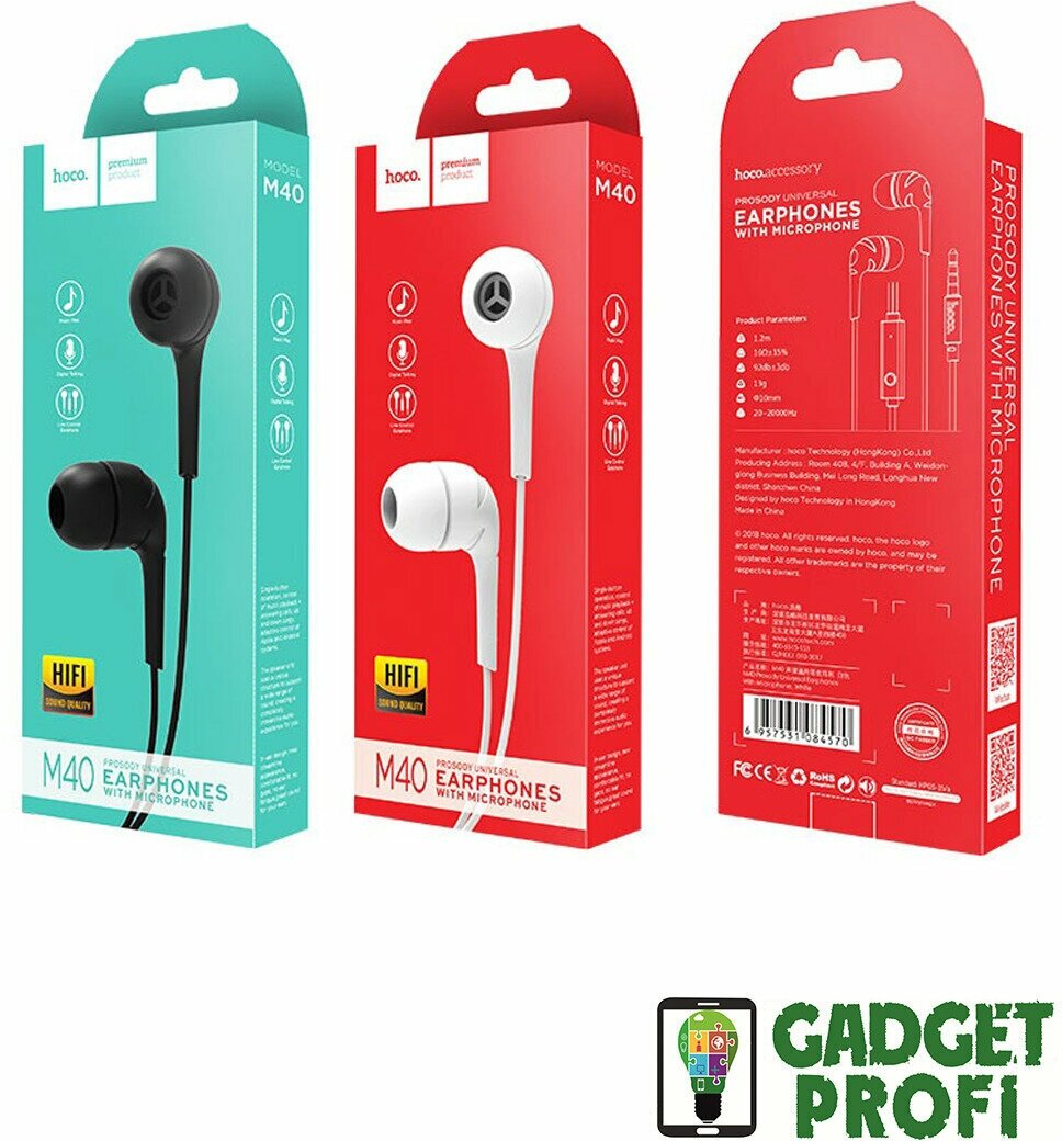 Наушники Hoco M40, проводные, вакуумные, микрофон, Jack 3.5 мм, 1.2 м, черные