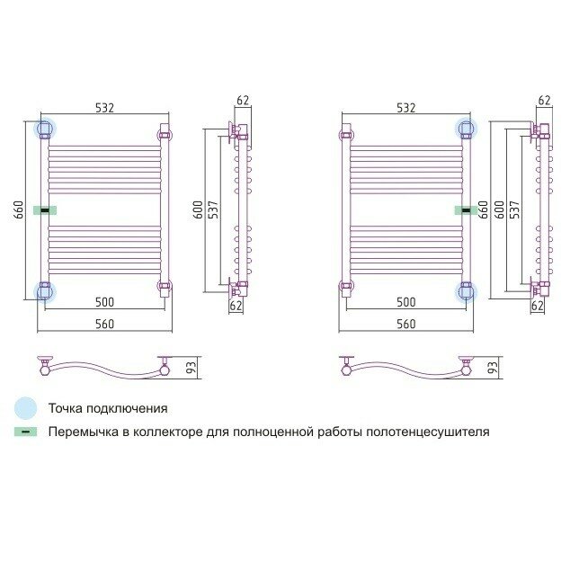 Полотенцесушитель водяной Флюид+ 600х500 Сунержа (00-0222-6050) информация:
