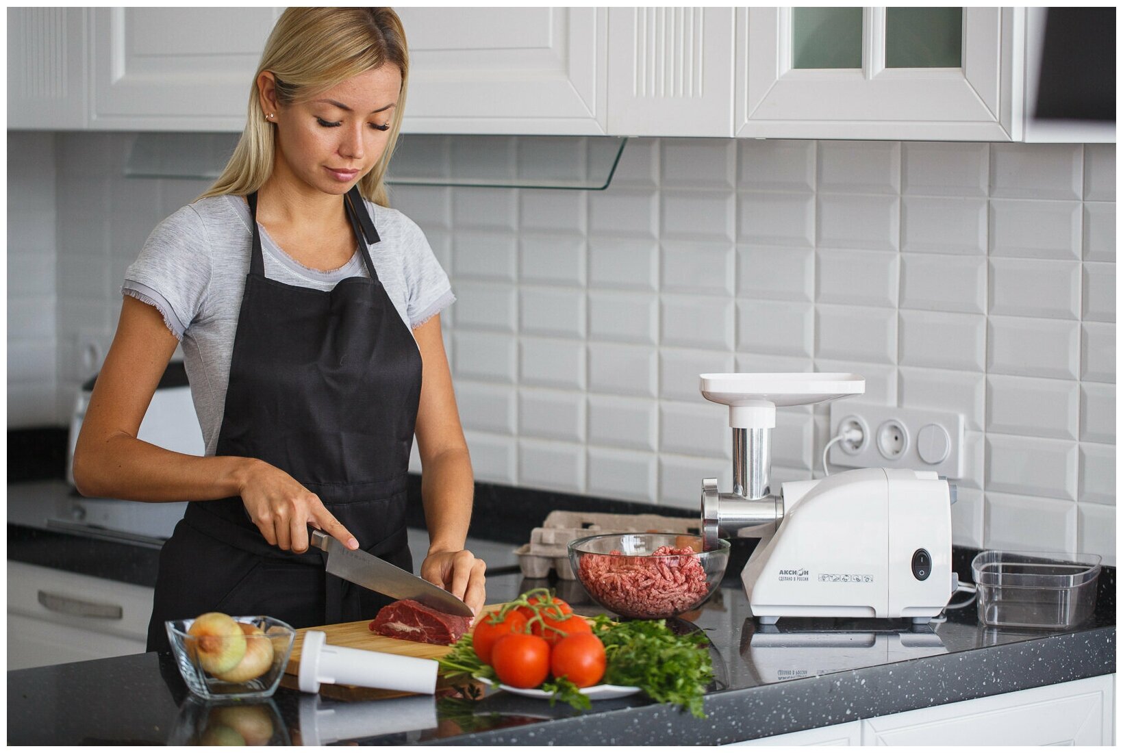Мясорубка Аксион М321, 1500 Вт, реверс, защита двигателя, насадки для кеббе и колбас