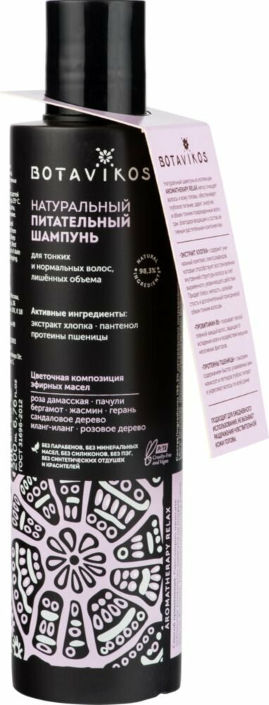 Натуральный питательный шампунь Botavikos Aromatherapy Relax для тонких волос, 200 мл