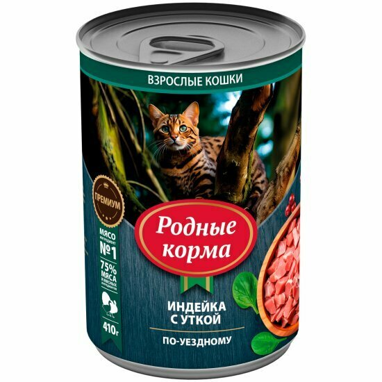 Родные корма Консервы для кошек индейка с уткой по-уездному, 410г 0.41 кг