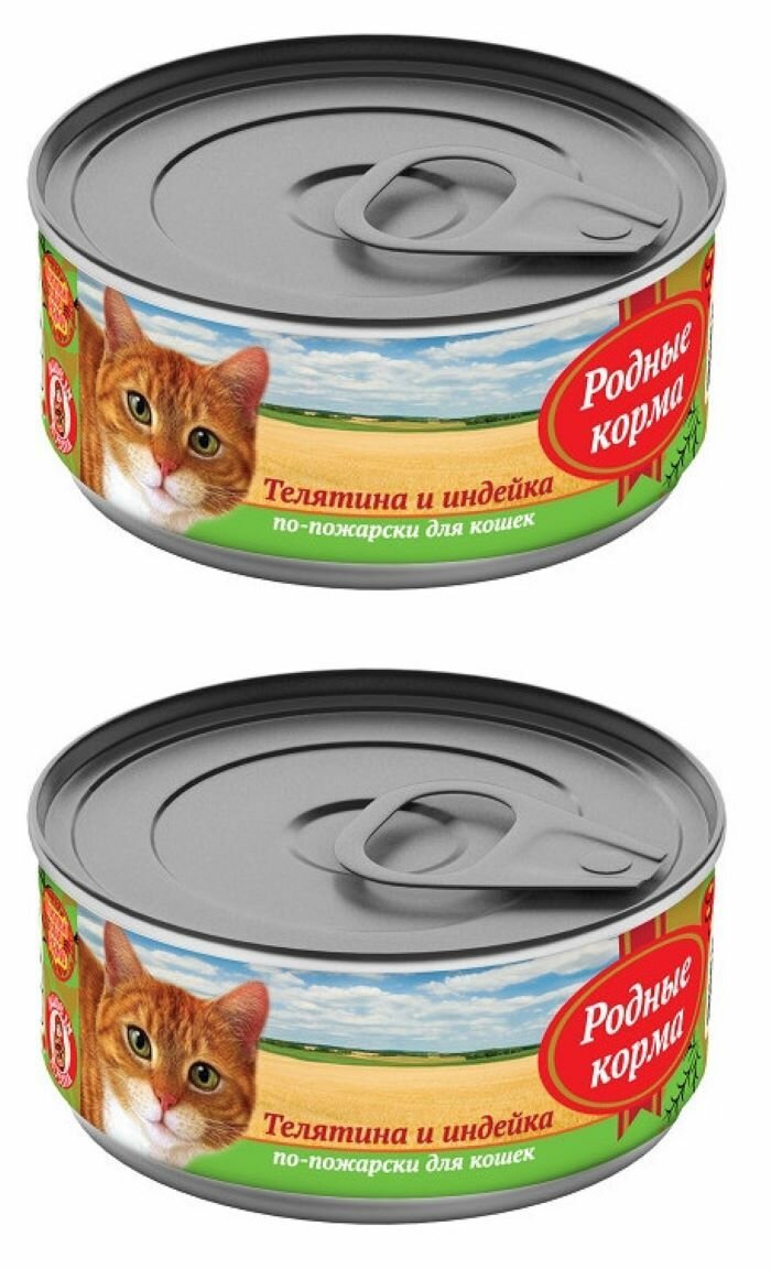 Родные Корма Консервы для кошек Телятина и индейка по-пожарски, 100 г, 2 шт информация: