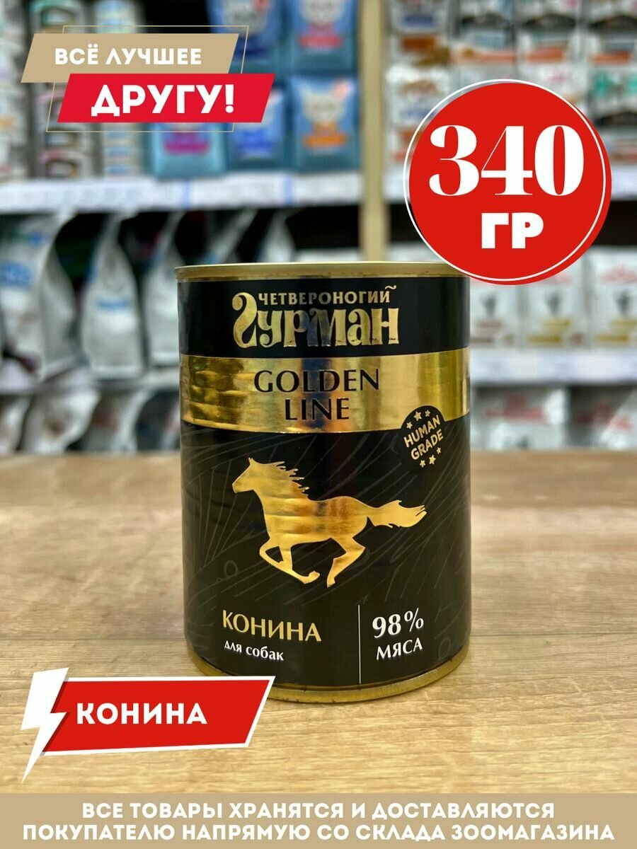 Влажный корм для собак Четвероногий Гурман Golden Line, беззерновой, конина 1 уп. х 1 шт. х 340 г