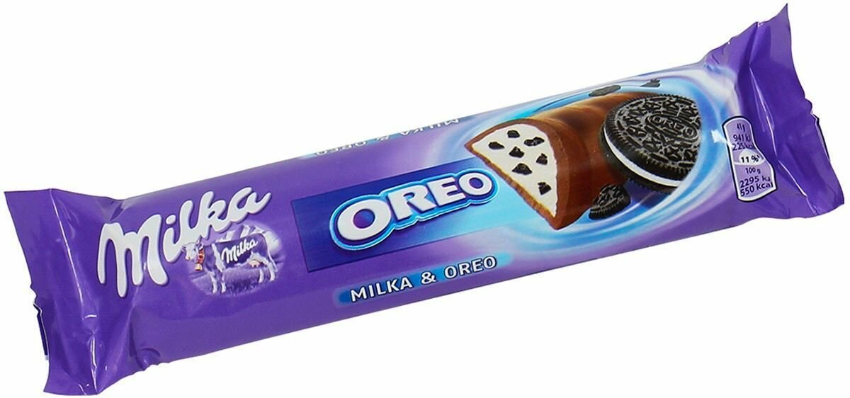 10 цен на Милка Шоколадный батончик с начинкой из печенья Орео и молочного крема / Milka Oreo Bar 37 гр х 36 шт / коробка шоколадок в индивидуальных упаковках