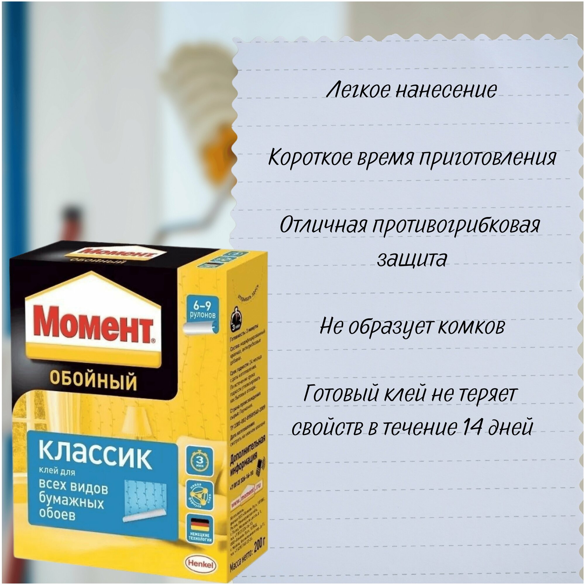 Обойный клей Момент - Классик для всех видов бумажных обоев, 200 г 529 ₽