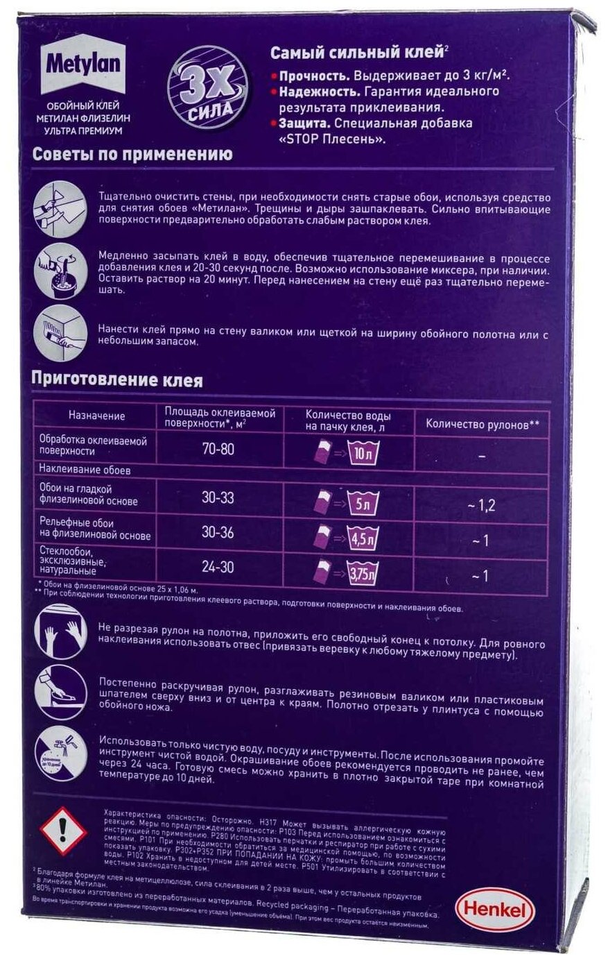 Клей обойный Metylan флизелин ультра премиум 250г 12337 информация: