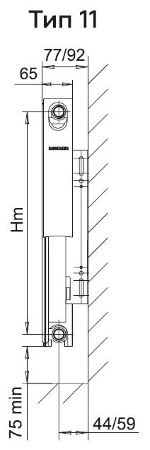 Радиатор стальной панельный ROMMER Ventil 11 нижнее подключение 300 / 800 RRS-2020-113080 информация: