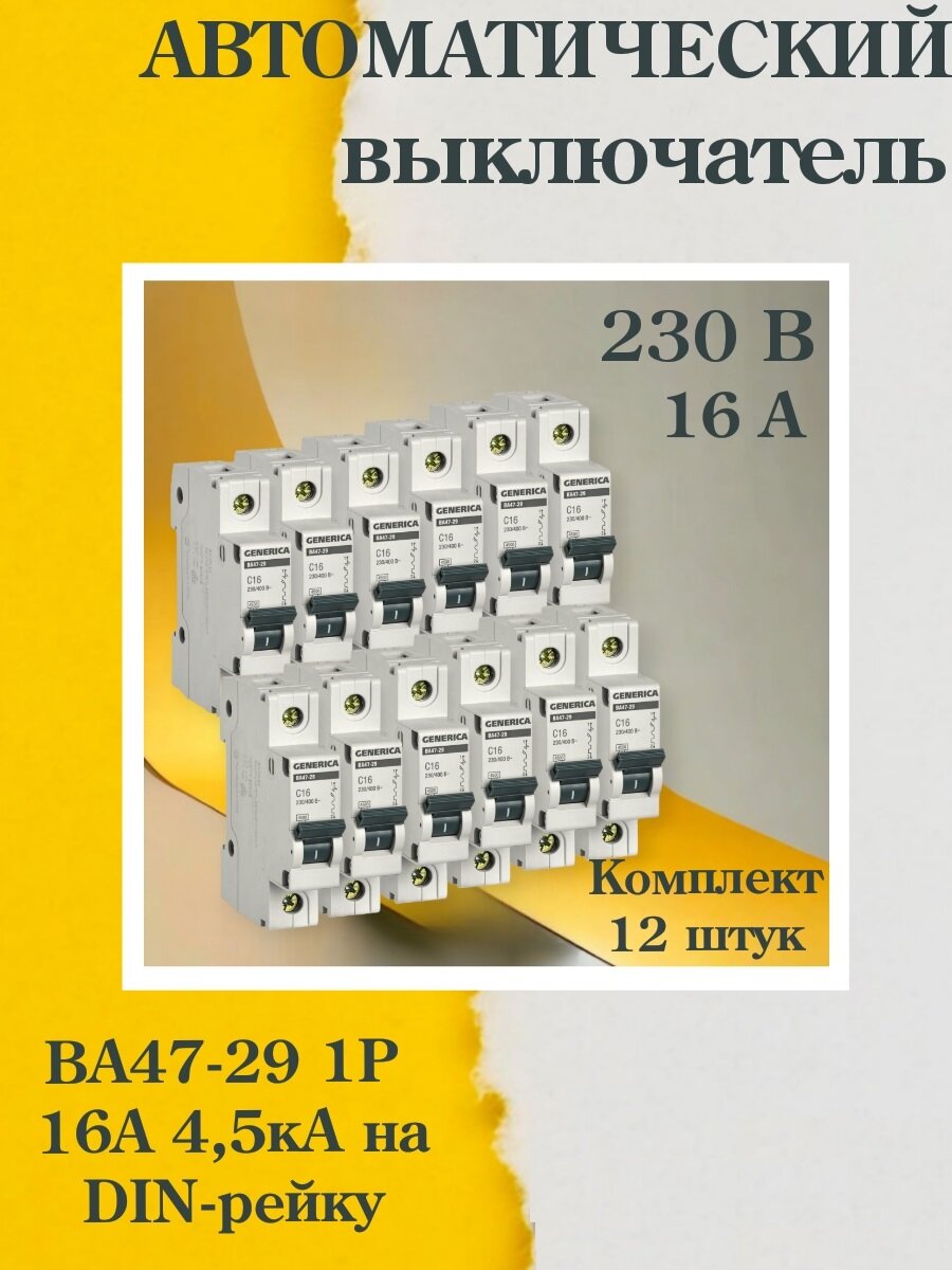 Отзывы на Выключатель автоматический модульный (комплект 12 ШТ) 1п C 16А 4.5кА ВА47-29 GENERICA (MVA25-1-016-C)