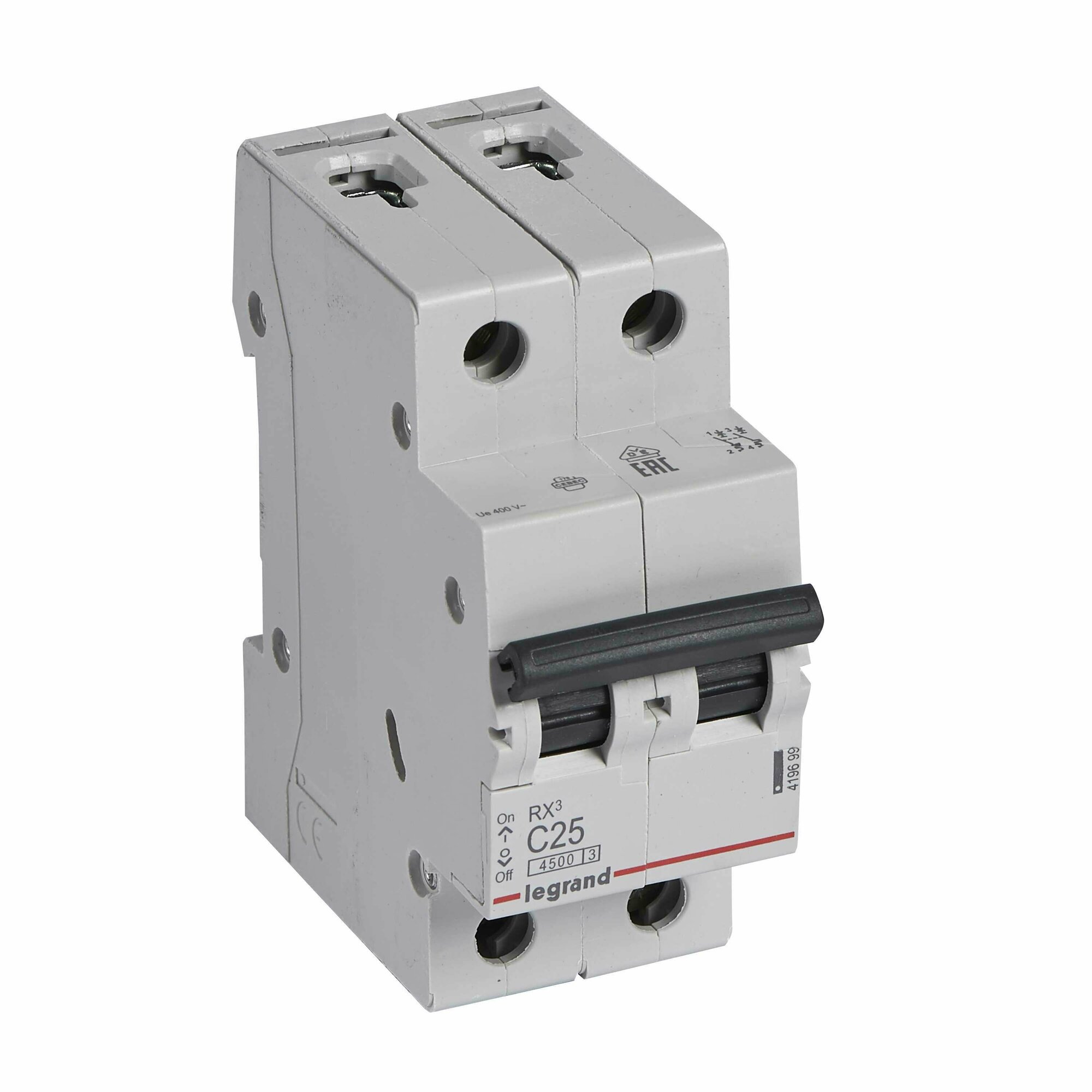 Выключатель автоматический двухполюсный RX3 4500 25А C 4,5кА. 419699 Legrand информация: