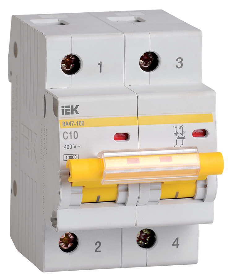 Автоматический выключатель двухполюсный IEK ВА47-100, 10А, 10кА, характеристика С
