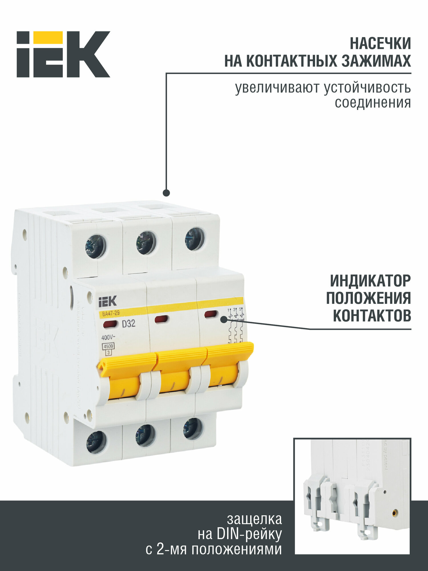 Отзывы на IEK Выключатель автоматический трехполюсный 32А D ВА47-29 4.5кА (MVA20-3-032-D)