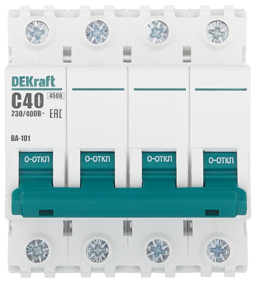 Автоматический выключатель четырёхполюсный DEKraft ВА-101 40А, 4.5кА, характеристика C
