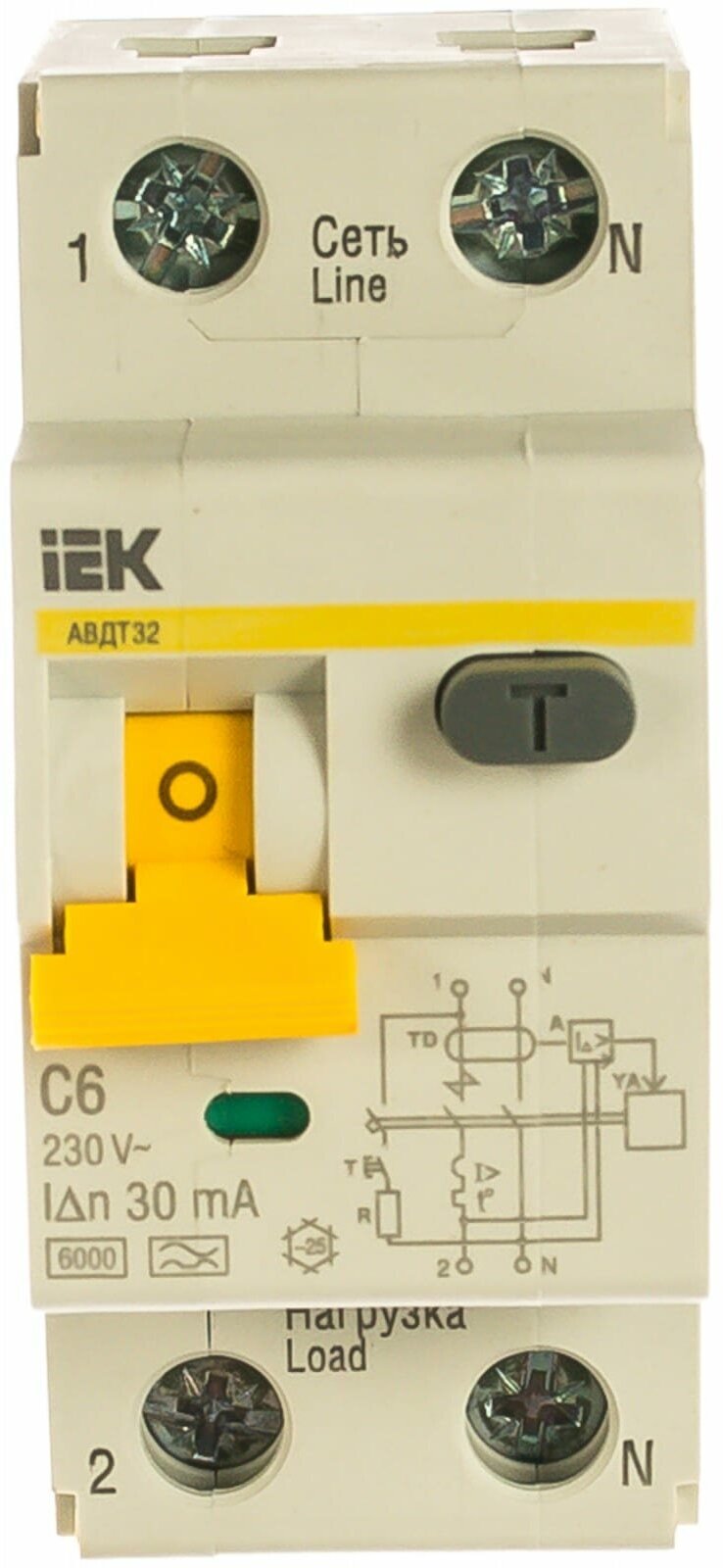 Отзывы на Выключатель автом. дифф. тока IEK АВДТ 32 (MAD22-5-006-C-30) 6A тип C 6kA 30мА A 1П+Н 230В 2мод белы