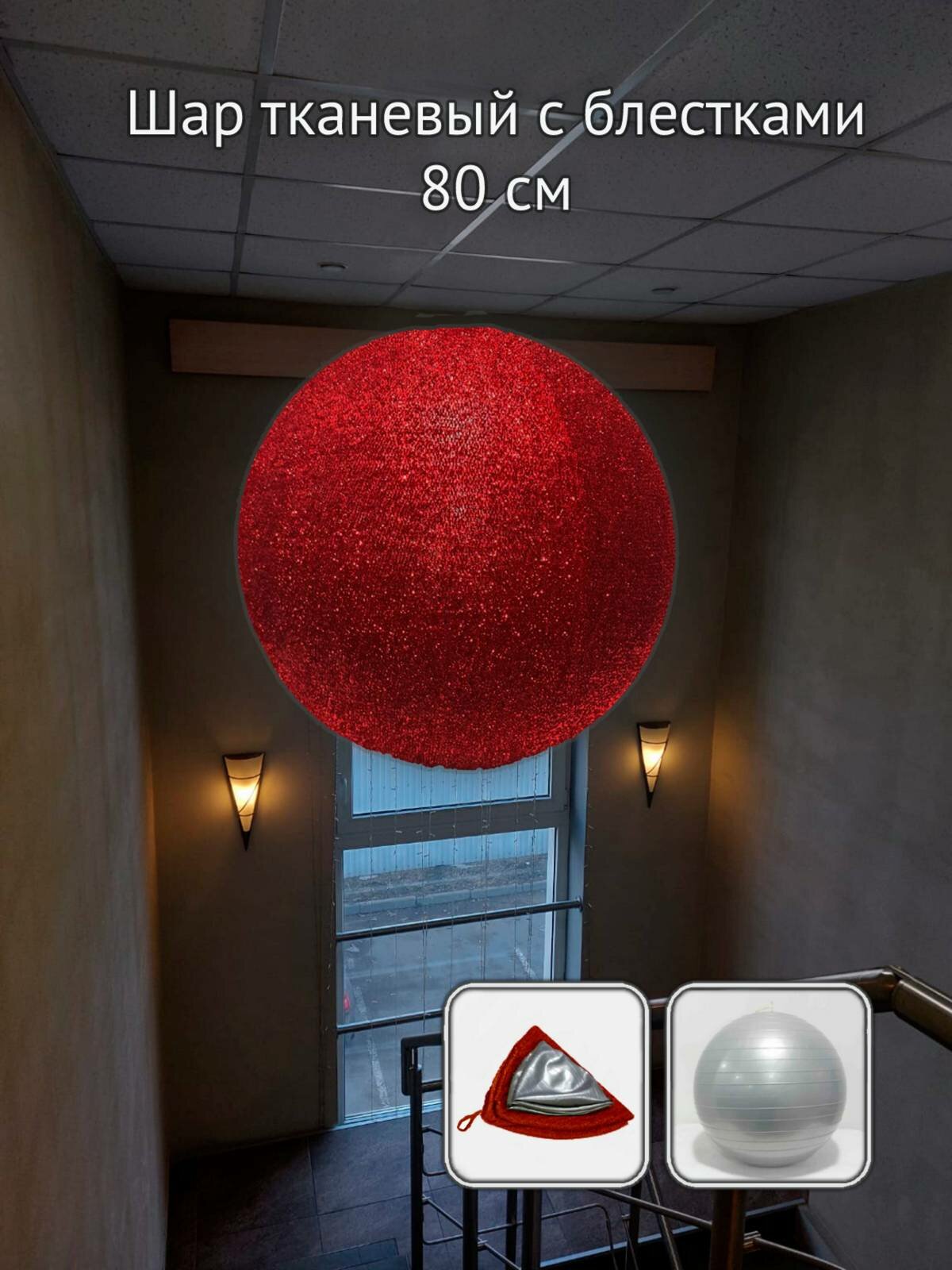 Шар тканевый с блестками, 80 см, красный