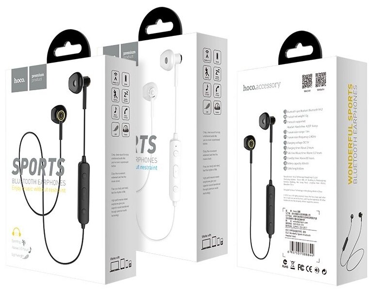 Беспроводные наушники HOCO ES21 Bluetooth Wonderful sport earphones, черные / наушники с микрофоном / беспроводная гарнитура