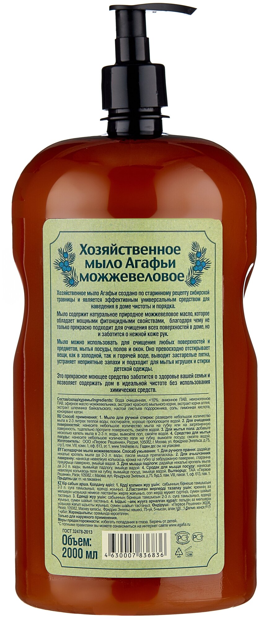 Мыло жидкое Рецепты бабушки Агафьи Мыло хозяйственное Агафьи можжевеловое, 2000 мл 4630007836836