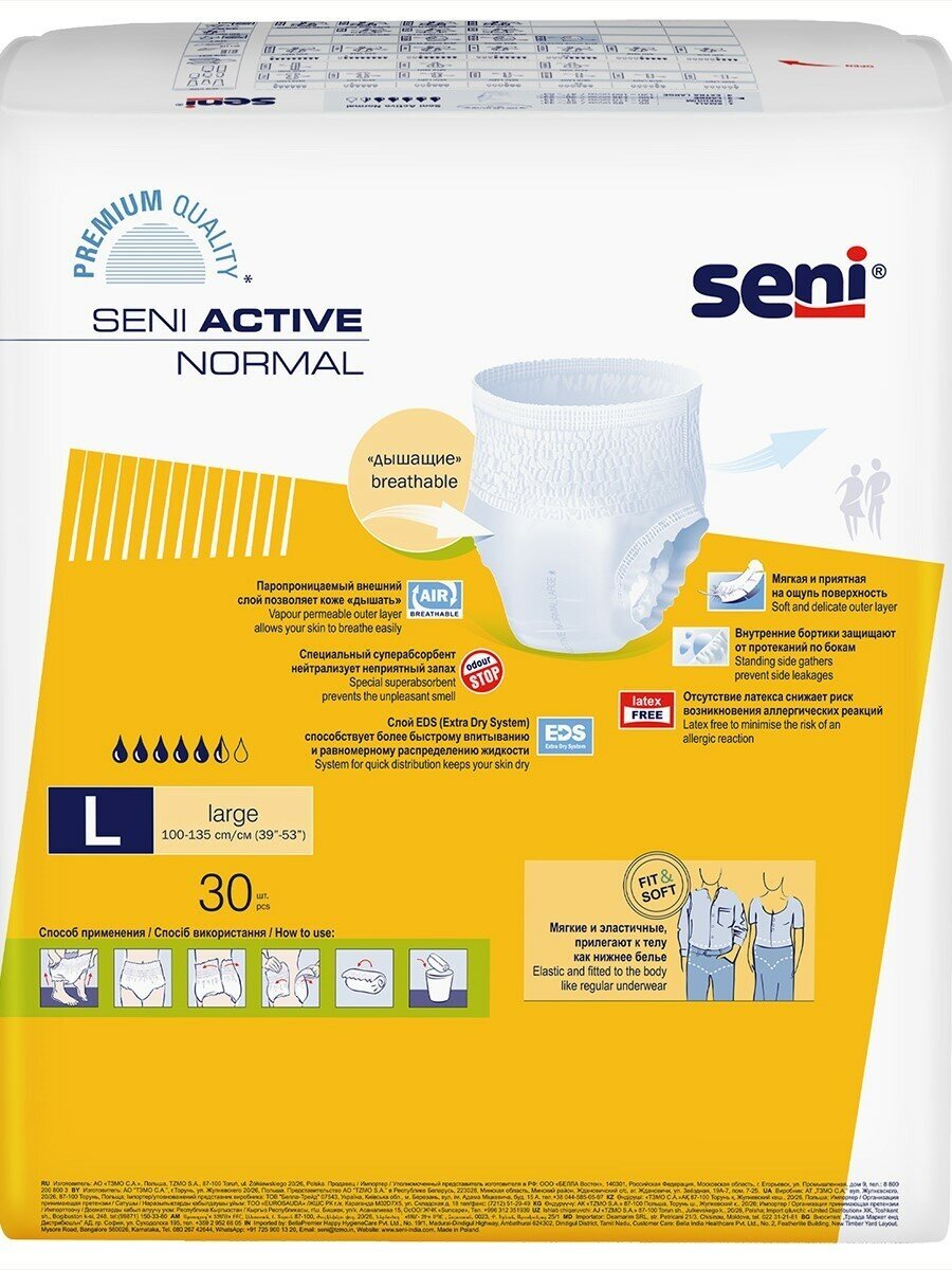 Seni Active Normal / Сени Актив Нормал - впитывающие трусы для взрослых, L, 30 шт. 3 319 ₽