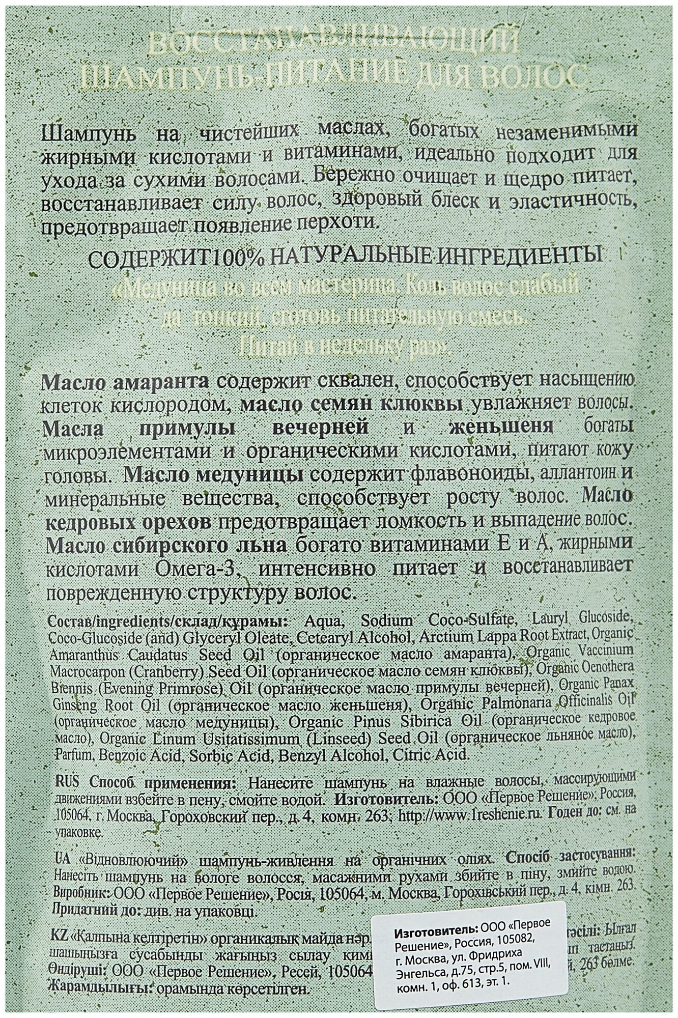 Банька Агафьи Шампунь-питание для волос восстанавливающий, дой-пак 100 мл
