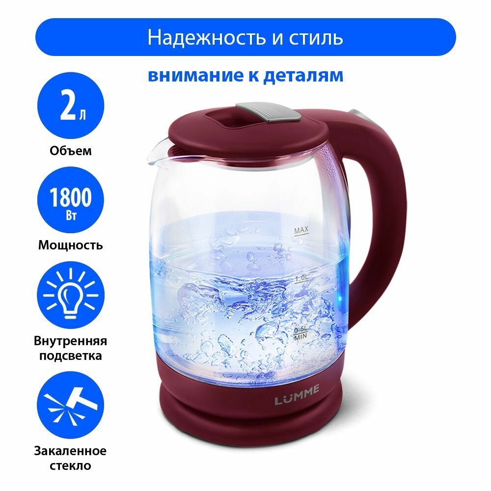 Электрический чайник LUMME LU-142 бордовый гранат информация: