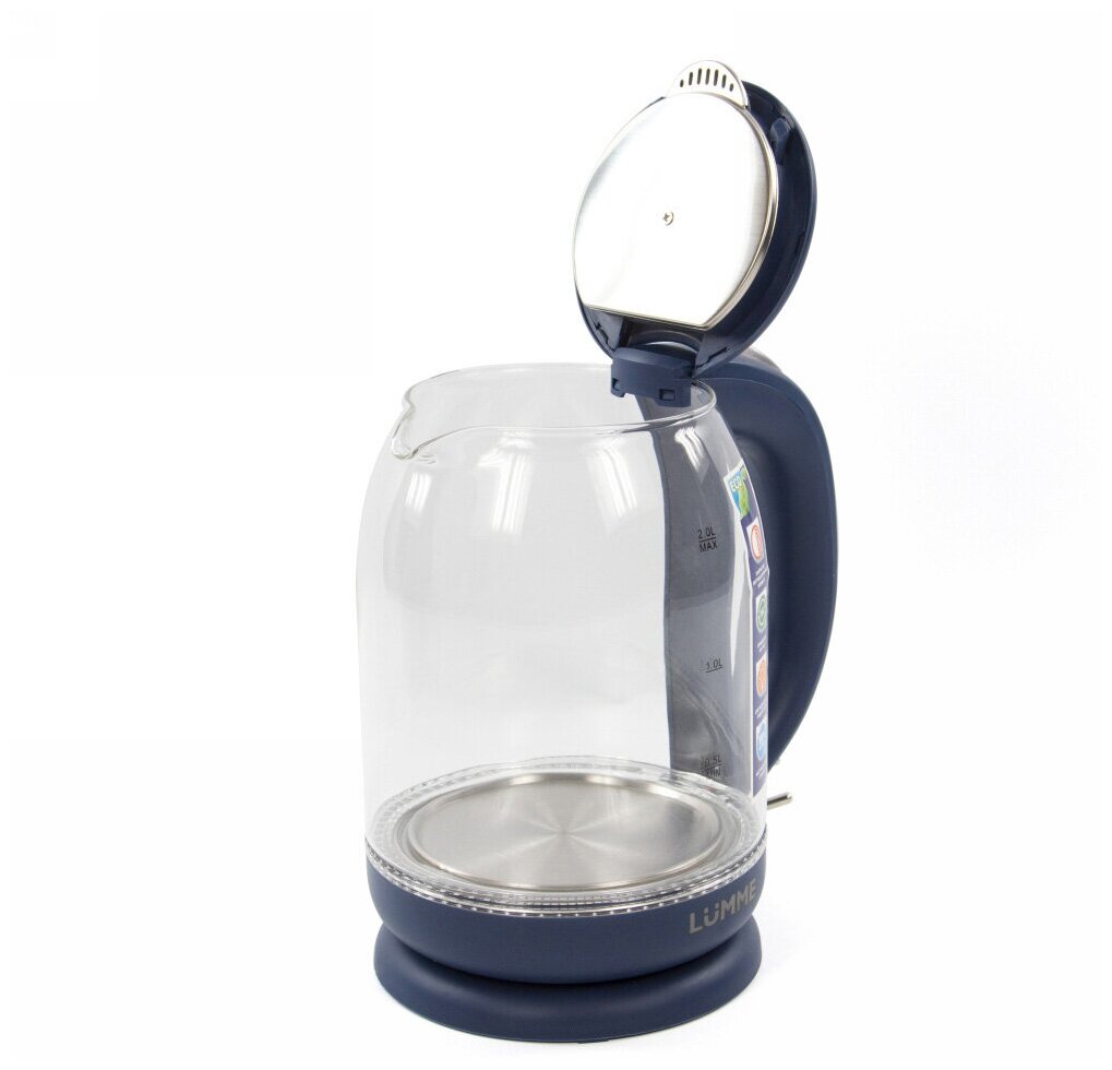Чайник LUMME LU-142 электрический стеклянный/ электрочайник 2л, серебряный сапфир