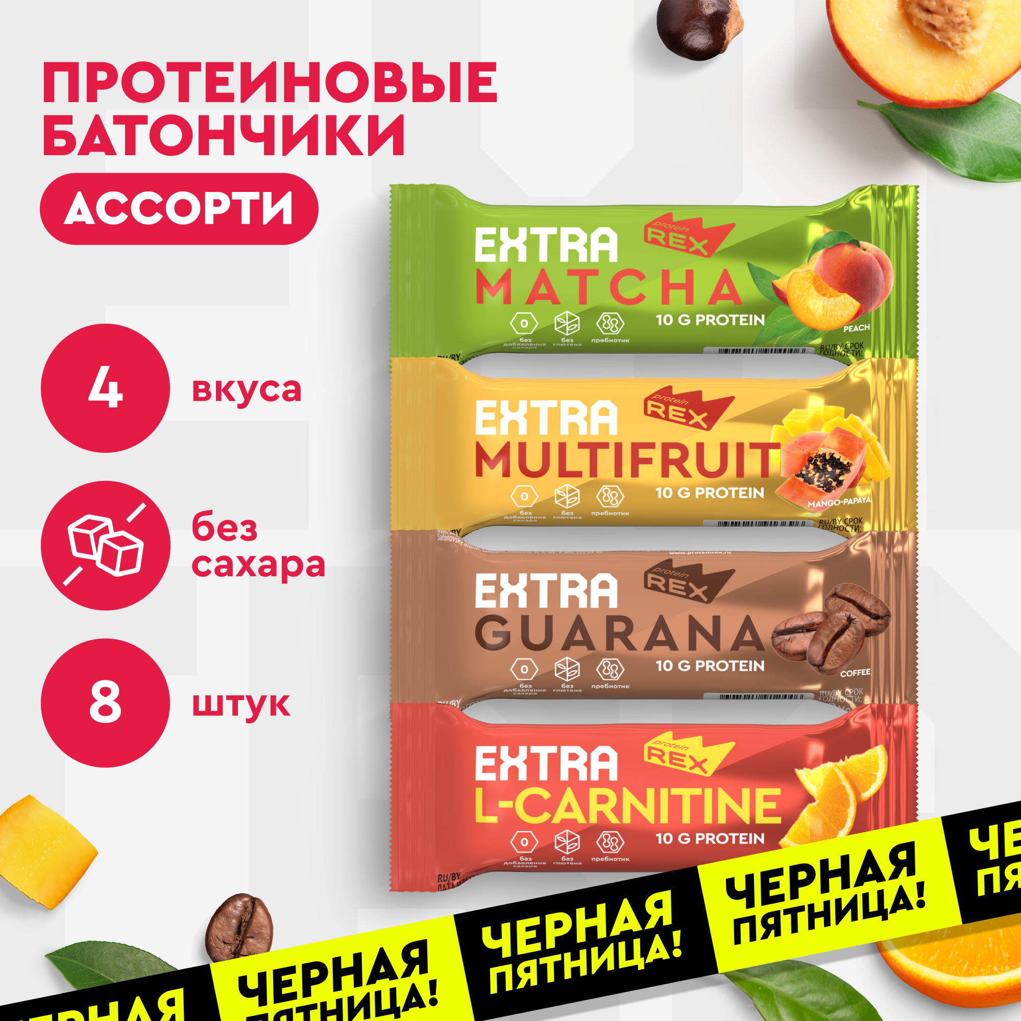 10 цен на Протеиновые батончики ProteinRex EXTRA Ассорти мини 8 шт х 40 г без сахара, спортивное питание, ПП сладости, спортивное печенье 120 ккал