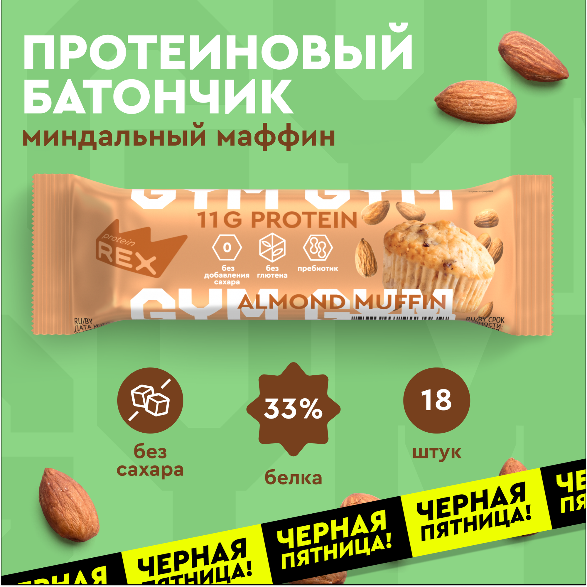 10 цен на Протеиновые батончики ProteinRex LOW CARB Миндальный маффин 18 шт х 35 г без сахара, 99 ккал спортивное питание, ПП еда, спортивные батончики
