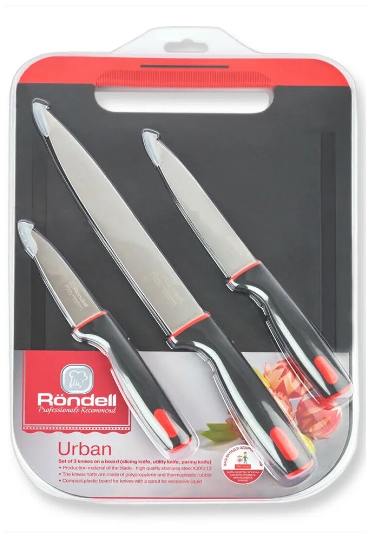 Набор ножей Rondell Urban, 3 шт. с разделочной доской (фм)