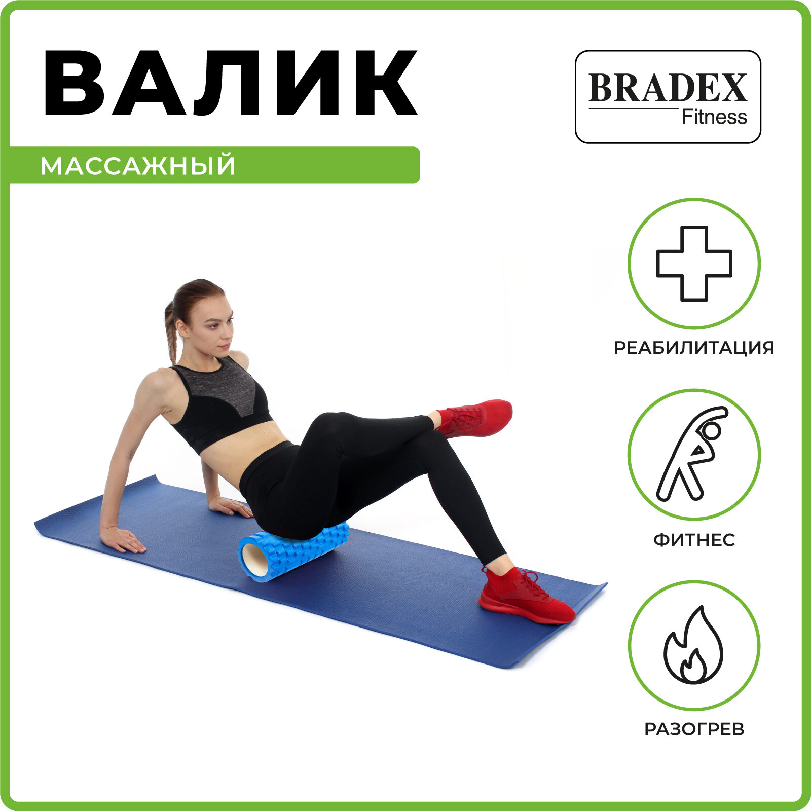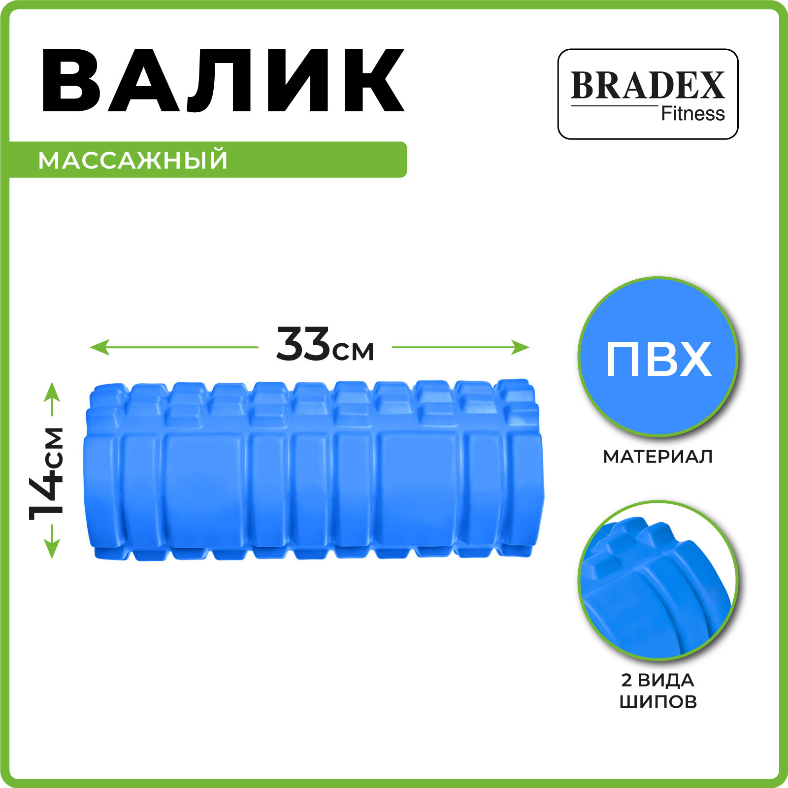 Ролик массажный BRADEX, спортивный валик для фитнеса, средняя жесткость, синий 1 120 ₽