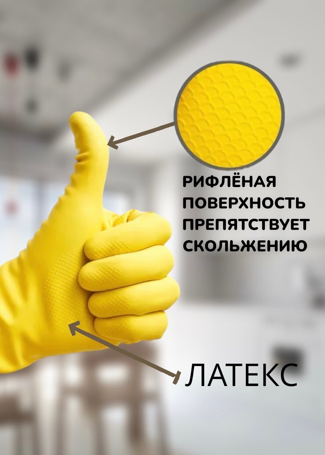 10 цен на перчатки хозяйственные латексные повышенной прочности с хлопковым напылением L (6 пар)