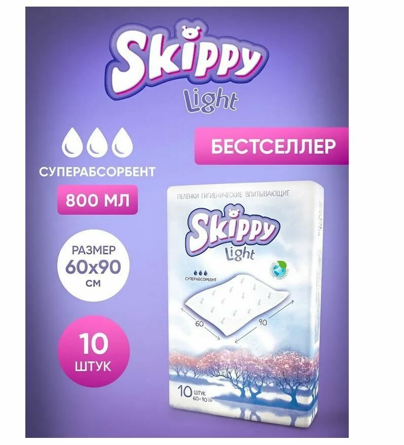 Пеленки одноразовые впитывающие Skippy Light 60x90 см, 10 шт информация: