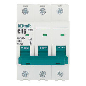 Автоматический выключатель Dekraft ВА-103 3P C16 А 6 кА