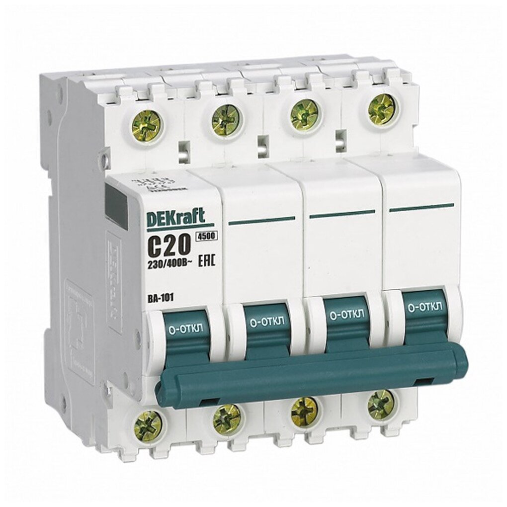 Dekraft ВА-101 Автоматический выключатель 3P+N 20А (B) 4,5кА 11239DEK (20 шт.) 21 200 ₽