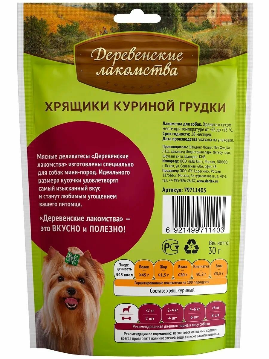 Деревенские лакомства для собак мини-пород Хрящики куриной грудки 30г информация: