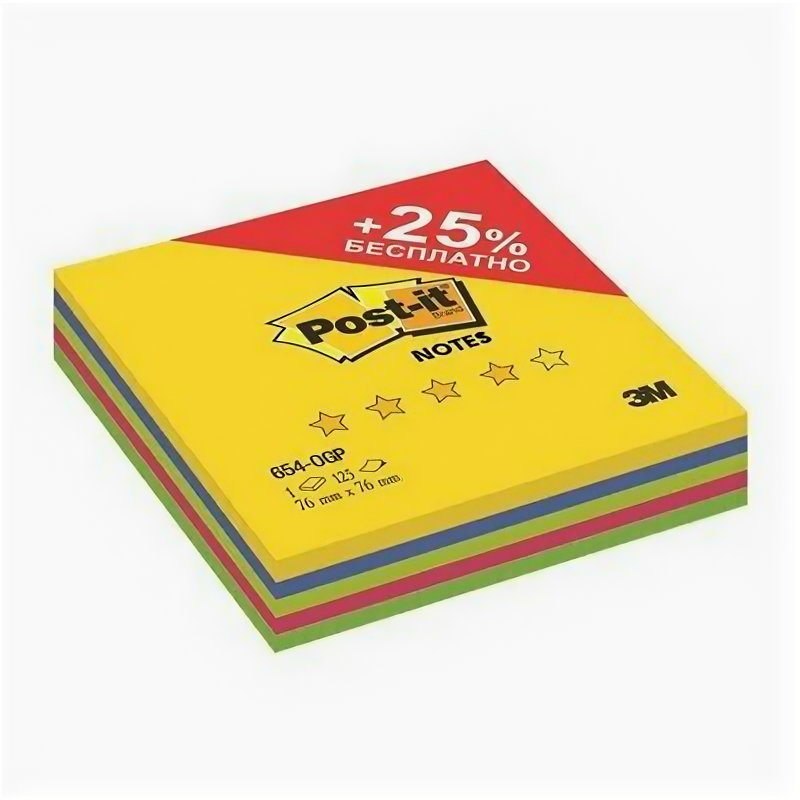 Блок самоклеящийся бумажный 3M Post-it Optima 654-OGP Весна Плюс 7100091465 76x76мм 125лист. ассорти 5цв.в упак.