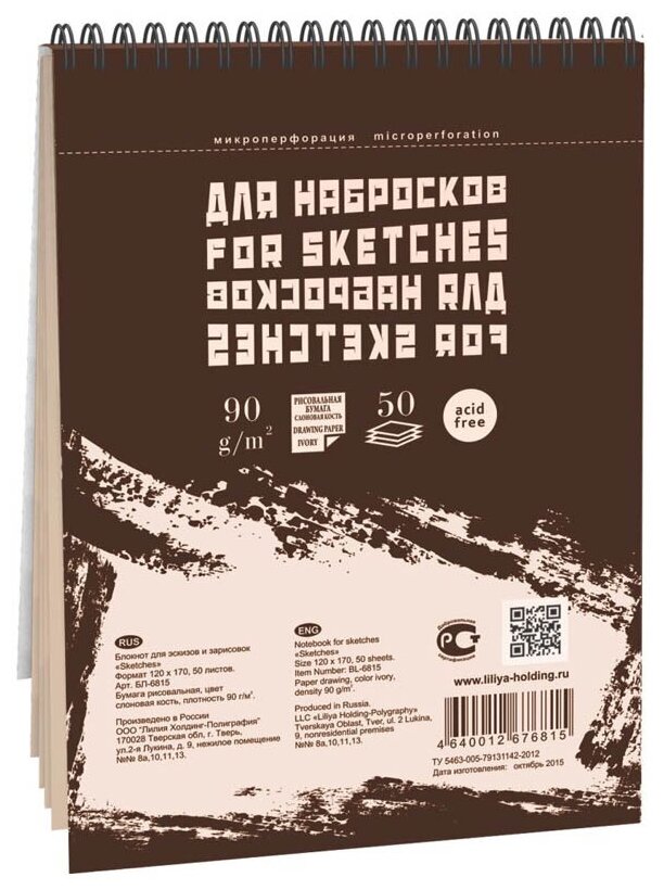 Блокнот для зарисовок А6, 50л Palazzo "Sketches" (90 г/кв.м, "Слоновая кость") (БЛ-6815) информация: