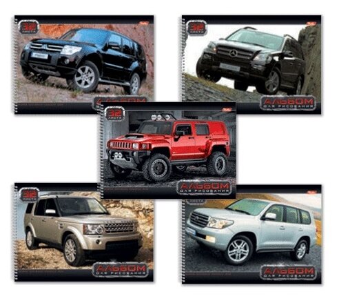 Альбом для рисования, А4, 20 листов, обложка картон, HATBER, 205х290 мм, "Внедорожники", 20А4В, A28162 информация: