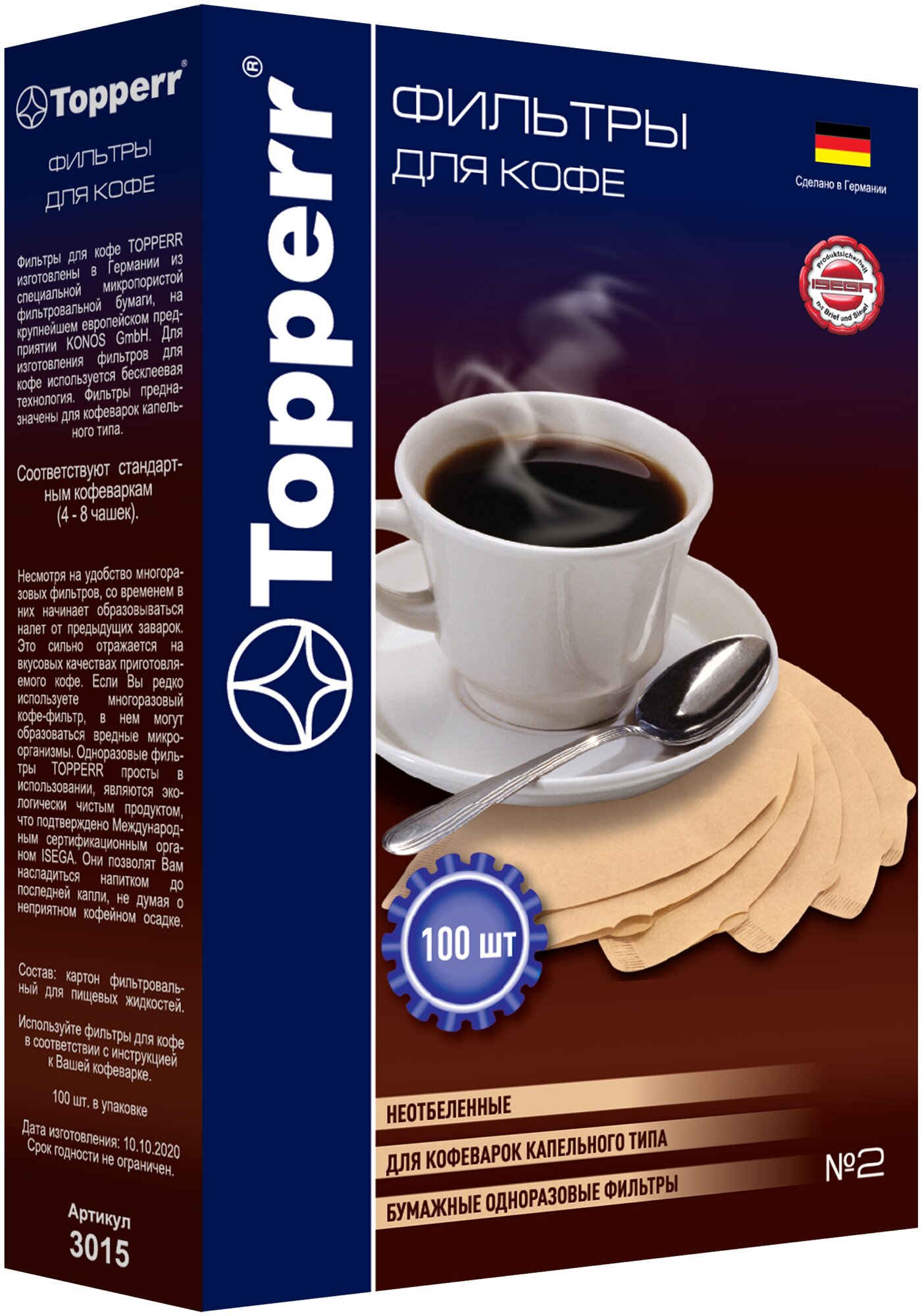 Topperr Бумажные одноразовые фильтры Тopperr для кофе №2, неотбеленные, 100 шт. информация: