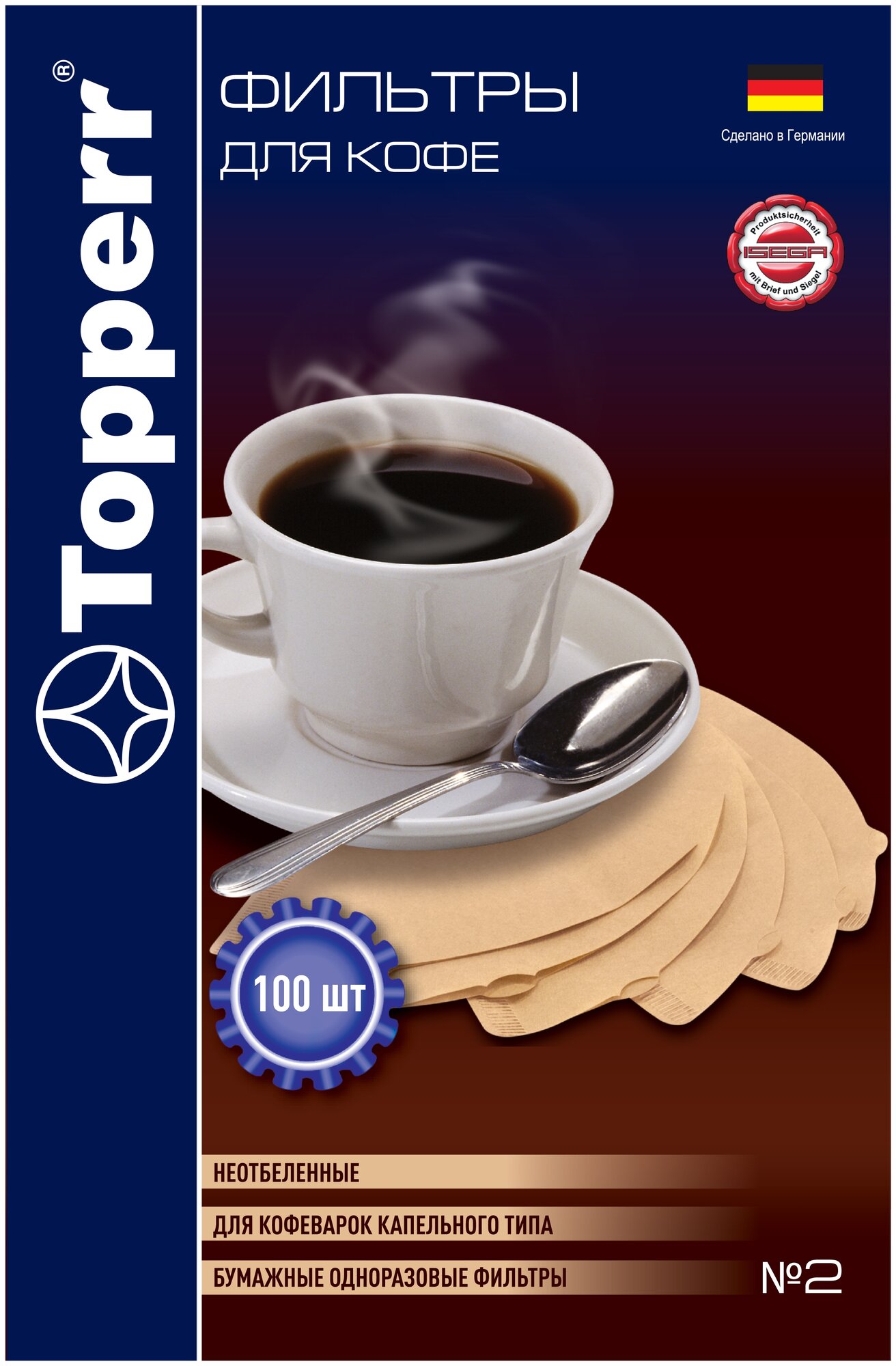 Бумажные одноразовые фильтры Тopperr для кофе №2, неотбеленные, 100 шт.