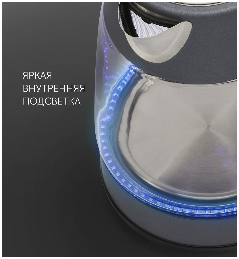 Чайник POLARIS PWK 1760CGL, 1,7л, 1850Вт, закрытый нагревательный элемент, стекло, графитовый, 37418 6 014 ₽